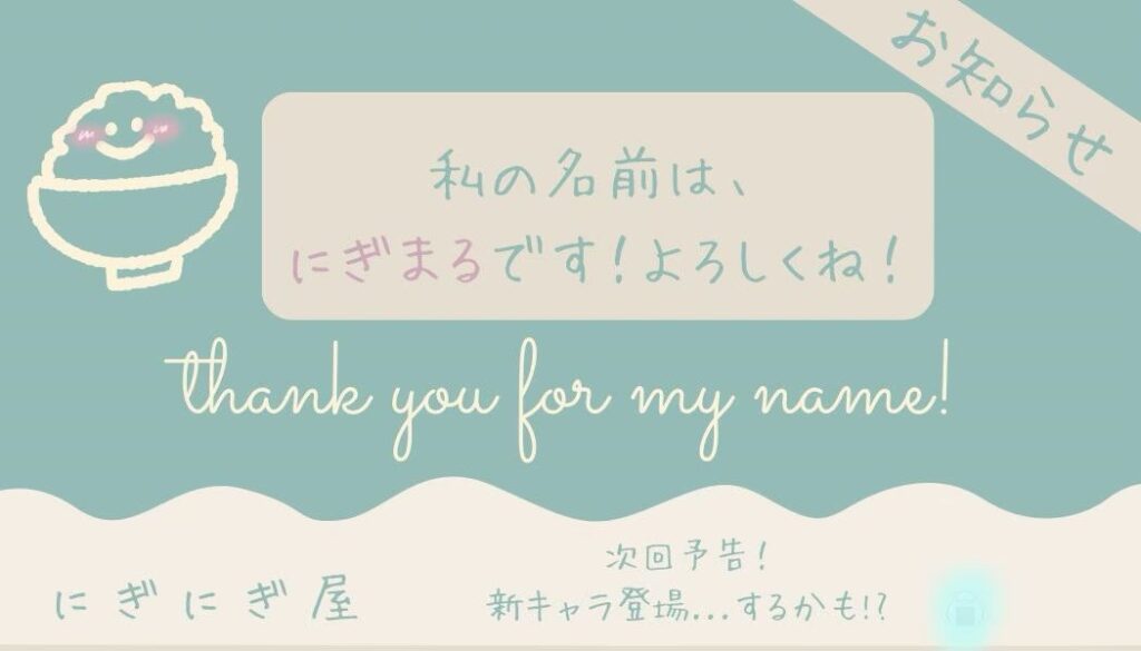 - (2026/2/18)【ご報告】にぎにぎ屋のキャラクター名が「にぎまる」に決定!